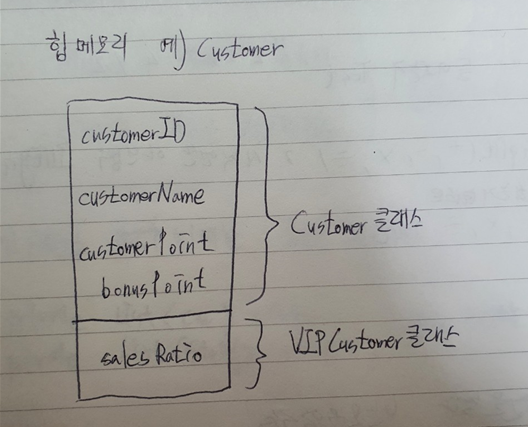 - 자손 클래스 = 자식 클래스 = 하위 클래스 = 파생 클래스