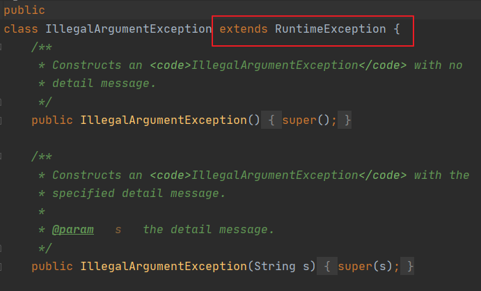 IllegalArgumentException์ RuntimeException์ ์์๋ฐ๊ณ ์๋ค.