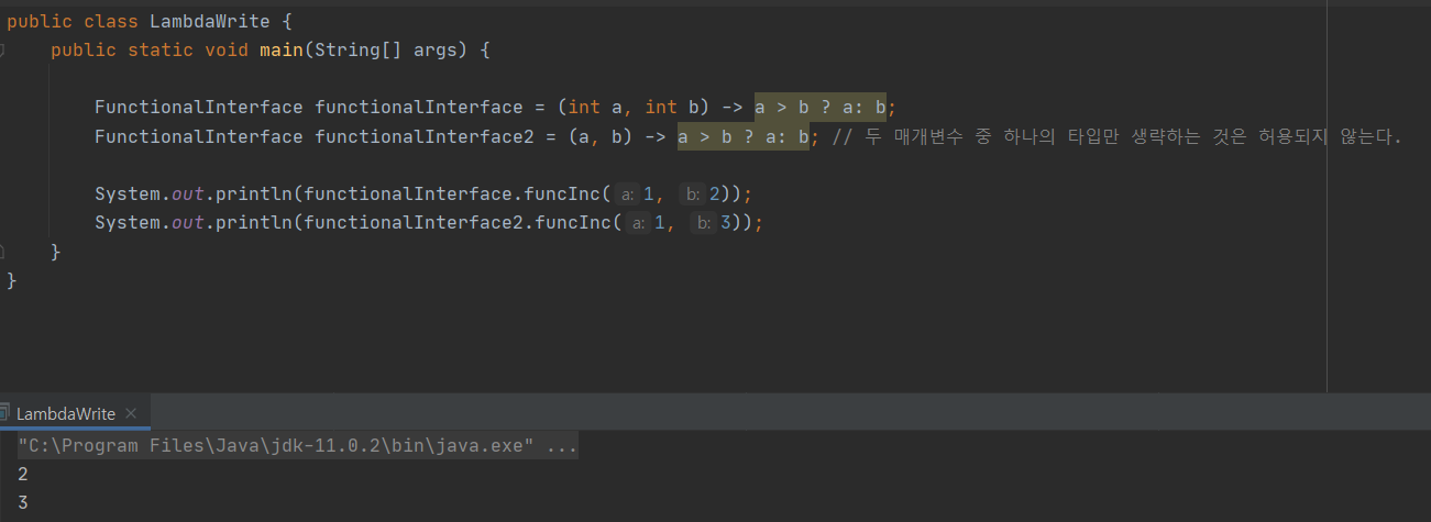 예를 들어 큰 값을 반환하는 메서드 max를 람다식으로 변환하면 아래와 같다.