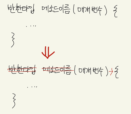 return 타입이 한줄인 경우 return생략 가능하다(컴파일러가 추론)